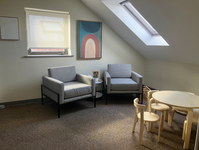 Each of the waiting rooms have child-friendly seating, coloring and children's books to keep siblings content, or our child clients at ease while waiting for their own session.